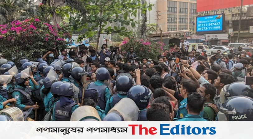 মঙ্গলবার (১১ মার্চ) দুপুরের দিকে পদযাত্রাটি ইন্টারকন্টিনেন্টাল মোড়ের পাশে পৌঁছালে পুলিশ প্রথমে তাতে বাধা দেয়।