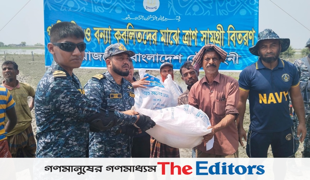 ত্রাণ বিতরণকালে নৌবাহিনীর লেফটেন্যান্ট কমান্ডার সোহেল রানা বলেন, বেড়িবাঁধ ভেঙে প্লাবিত এলাকার মানুষ পানিবন্দি অবস্থায় দুর্বিষহ জীবনযাপন করছে। মানবিক এ পরিস্থিতিতে বাংলাদেশ নৌবাহিনী জনগণের দুঃখ-দুর্দশা লাঘবে কাজ করছে।