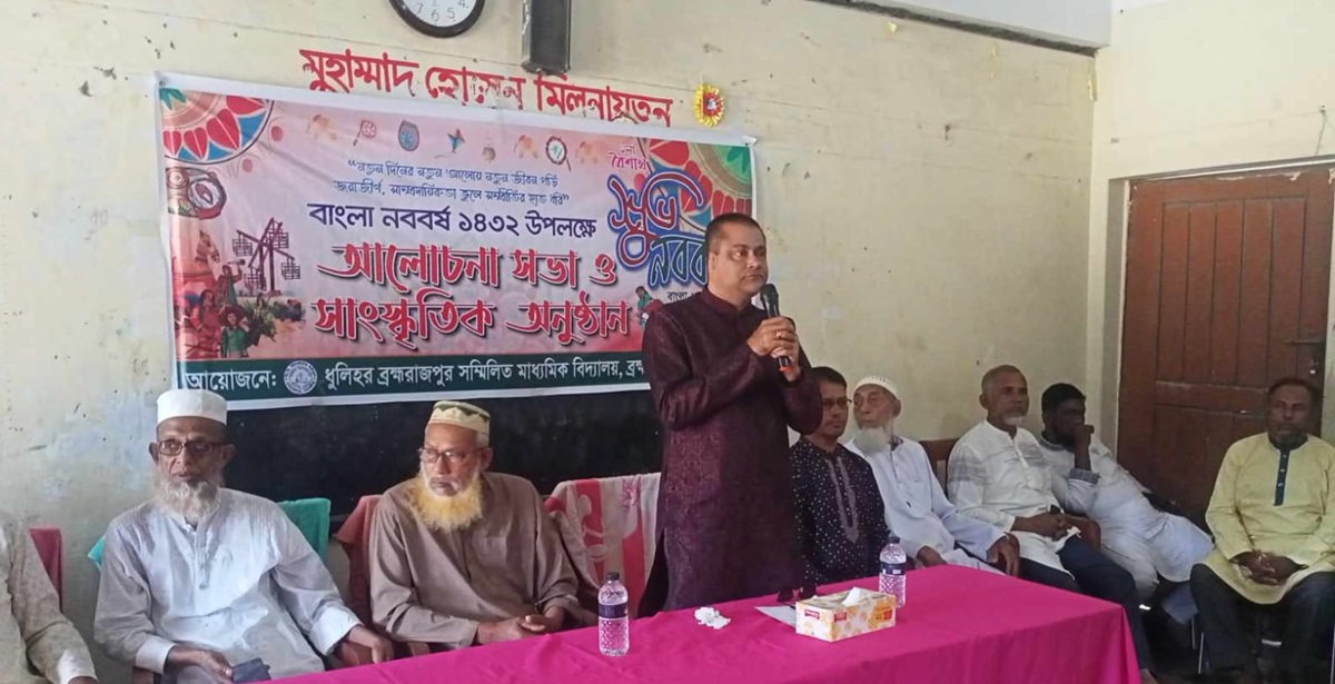 সোমবার (১৪ এপ্রিল) এ উপলক্ষে বিদ্যালয়ের মুহাম্মদ হোসেন মিলনায়তনে প্রধান শিক্ষক মো. মমিনুর রহমান মুকুলের সভাপতিত্বে আলোচনা সভা অনুষ্ঠিত হয়। এতে অতিথি হিসেবে উপস্থিত ছিলেন বীর মুক্তিযোদ্ধা আব্দুস সাত্তার, রফিক আহম্মেদ মোল্যা, আব্দুস সালাম সানা, জাহাঙ্গীর হোসেন, বি.ডি.এফ প্রেসক্লাবের সভাপতি শাহাদাত হোসেন বাবু, সাংবাদিক জিএম আমিনুল হক, আরশাদ আলী, ব্রহ্মরাজপুর সরকারি প্রাথমিক বিদ্যালয়ের শিক্ষক মো. আবুল খায়ের, ডিবি ইউনাইটেড প্রিক্যাডেট স্কুলের প্রধান শিক্ষক আব্দুল হাই, শামছুর রহমান সোনা, কানাই লাল কানু সাহা প্রমুখ।
