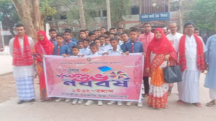 সোমবার (১৪ এপ্রিল) সকালে বিদ্যালয়ের শিক্ষক-শিক্ষার্থীরা নানা সাজে সজ্জিত হয়ে জেলা প্রশাসন আয়োজিত আনন্দ শোভাযাত্রায় অংশগ্রহণ করে।