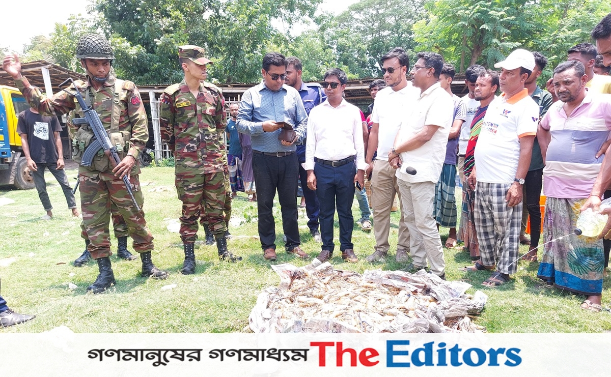 এসময় জব্দকৃত চিংড়ি মাছগুলো প্রকাশ্যে আগুনে পুড়িয়ে বিনষ্ট করা হয়।