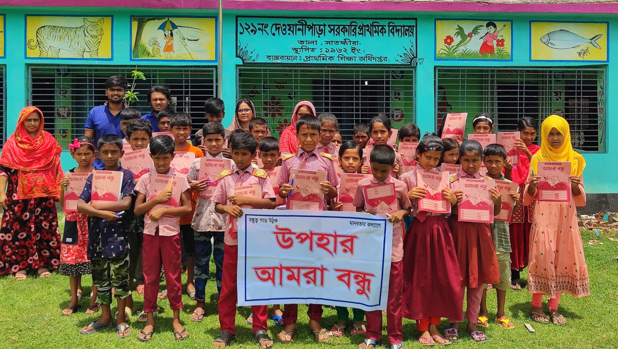 ডেস্ক রিপোর্ট: তালার তেঁতুলিয়া ইউনিয়নের ১২৯নং দেওয়ানীপাড়া সরকারি প্রাথমিক বিদ্যালয়ের ছোটবন্ধুদের খাতা ও কলম উপহার প্রদান করেছে স্বেচ্ছাসেবী সংগঠন আমরা বন্ধু।