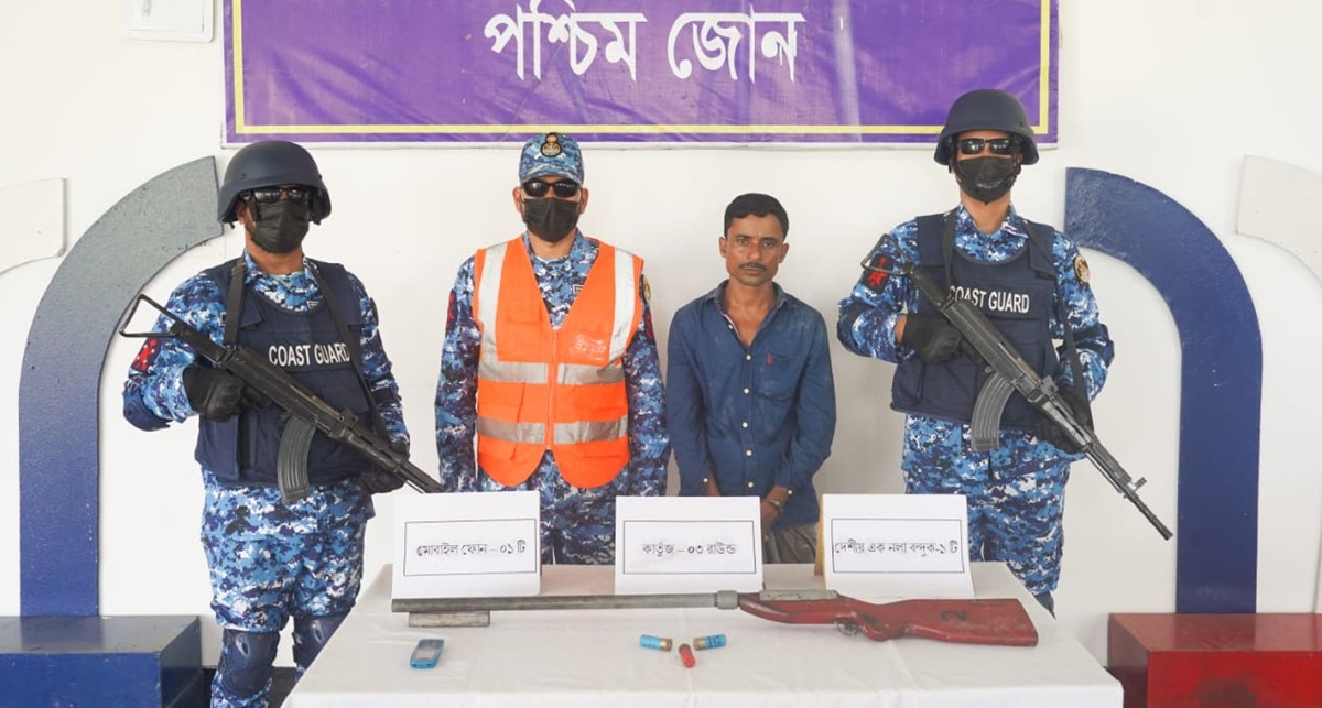 আলী আজীম, মোংলা (বাগেরহাট): শিবসা নদীতে অভিযান চালিয়ে অস্ত্র ও গোলাবারুদসহ সুন্দরবনে দুর্ধর্ষ বনদস্যু করিম শরীফ বাহিনীর সদস্য মোঃ সোহেল হোসেন মিঠু (৩৭) কে আটক করেছে কোস্ট গার্ড।