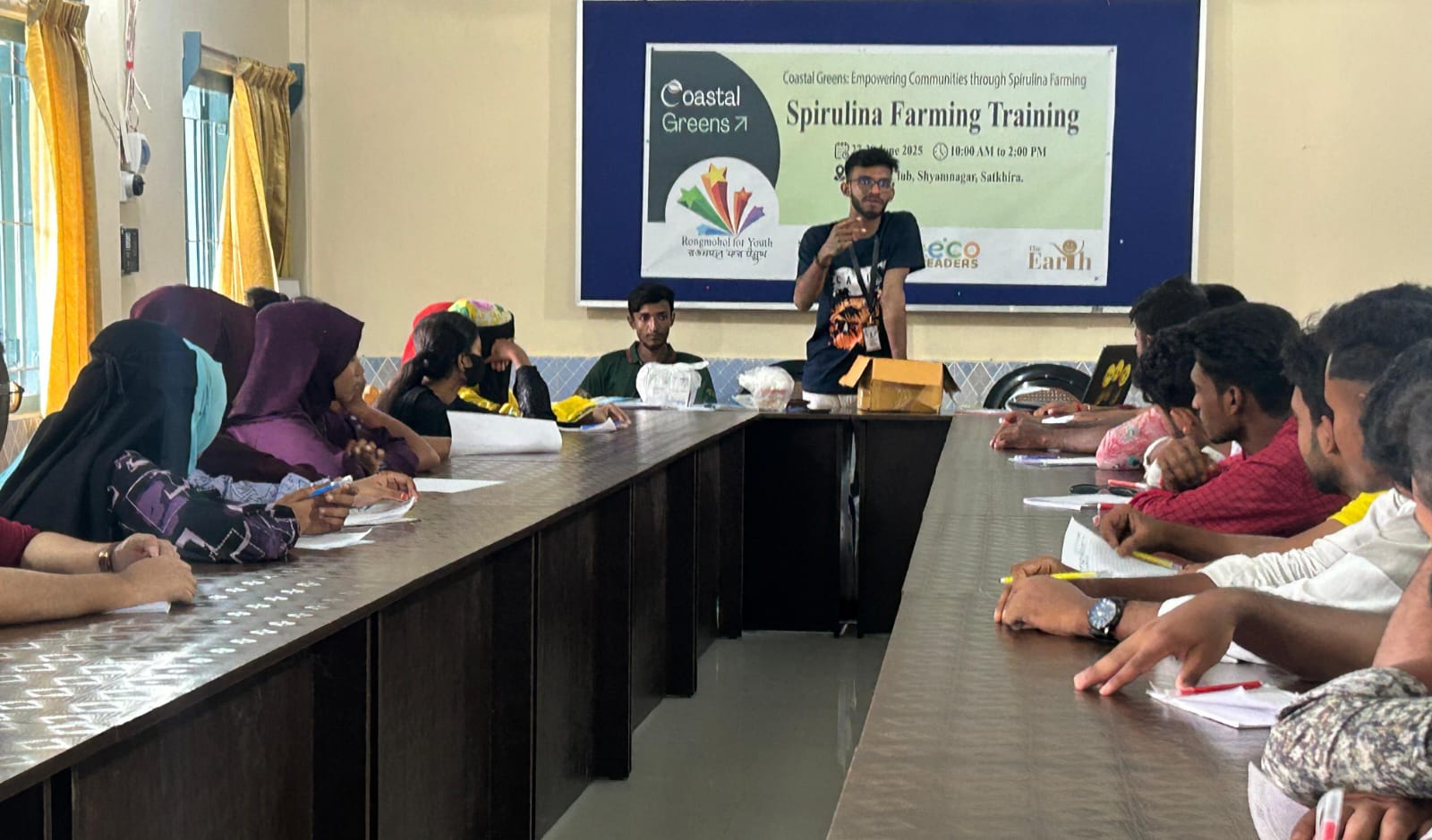 এতে প্রশিক্ষণ প্রদান করেন তরুণ কৃষি ও পরিবেশ বিষয়ক প্রশিক্ষক শেখ আবিদ হোসেন আপন। তিনি অংশগ্রহণকারীদের মধ্যে স্পিরুলিনা চাষ, পানি ব্যবস্থাপনা, স্বাস্থ্য ও পরিচ্ছন্নতা, উৎপাদন ও প্রক্রিয়াজাতকরণসহ সবুজ উদ্যোক্তা হয়ে ওঠার মৌলিক ধারণা দেন।