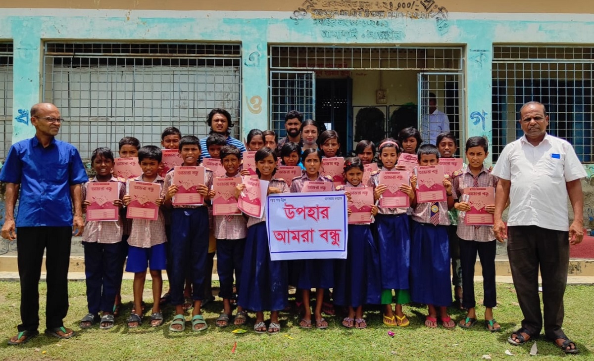 খাতা কলম উপহার পেয়ে বিদ্যালয়ের পঞ্চম শ্রেণী ছাত্র বাধন সরকার বলে, আজ আমাদের বিদ্যালয়ে বড়বন্ধুরা এসে সকলকে খাতা ও কলম উপহার দিয়েছে। আমরা খুবই খুশি হয়েছি।