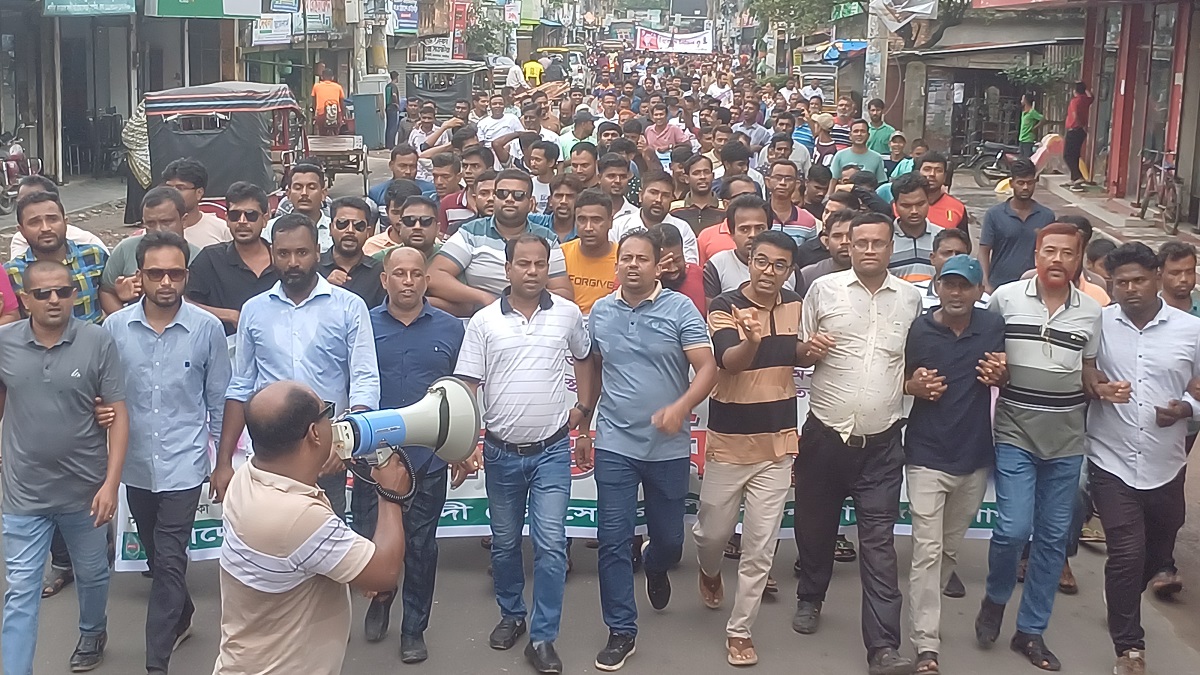 এসময় স্বেচ্ছাসেবক দলের নেতাকর্মীরা ‘জামায়াত-শিবির রাজাকার, এই মুহূর্তে বাংলা ছাড়’, ‘দিল্লি গেছে স্বৈরাচার, পিন্ডি যাবে রাজাকার’, ‘জামায়াত-শিবিরের চামড়া, খুলে নেব আমরা’, ‘এনসিপির চামড়া, খুলে নেব আমরা’ প্রভৃতি স্লোগানে মুখরিত করে বিক্ষোভ প্রদর্শন করে।