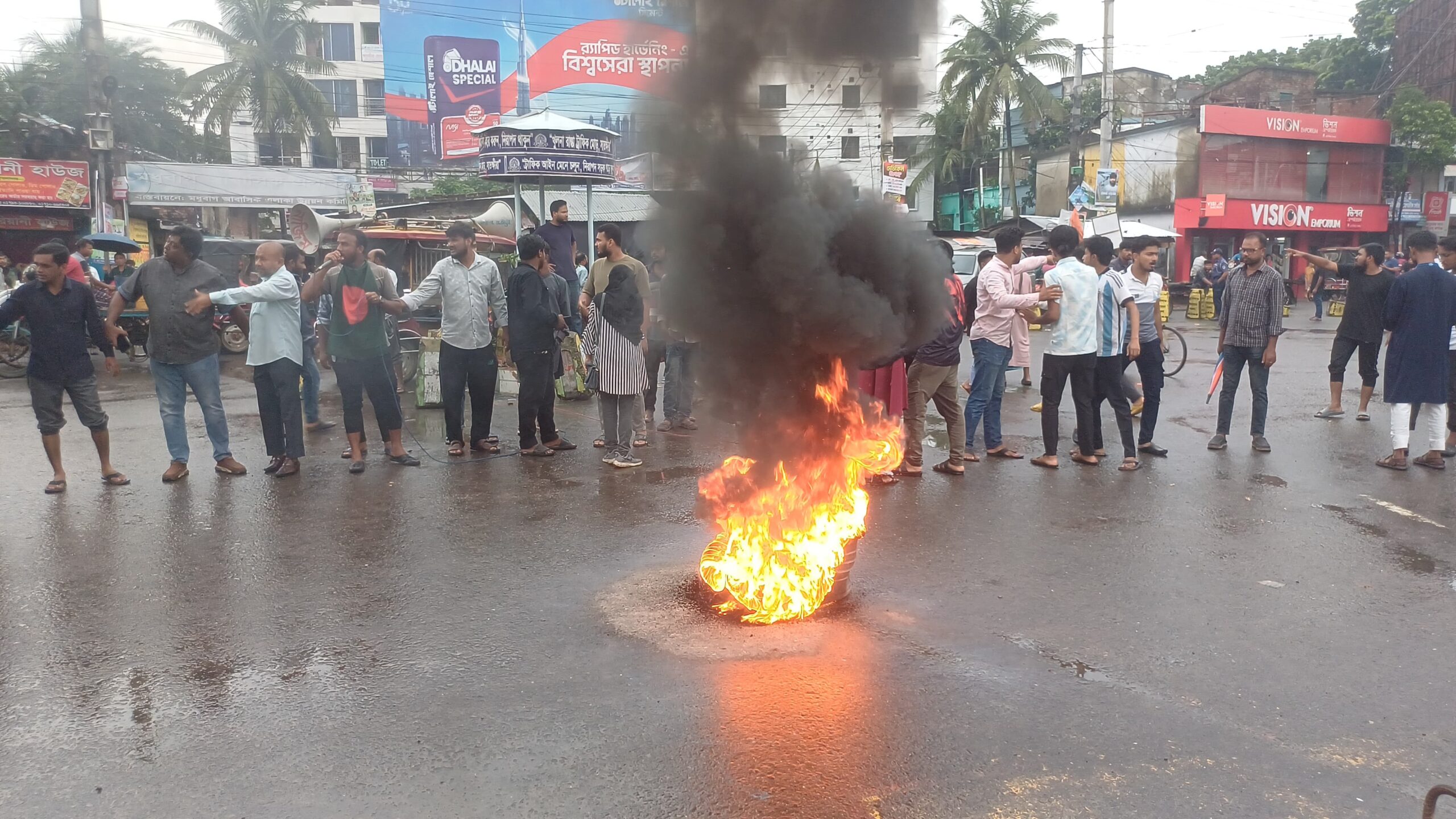 এসময় টায়ার জ্বালিয়ে ও স্লোগানে স্লোগানে মুখরিত করে বিক্ষোভ প্রদর্শন করে তারা।