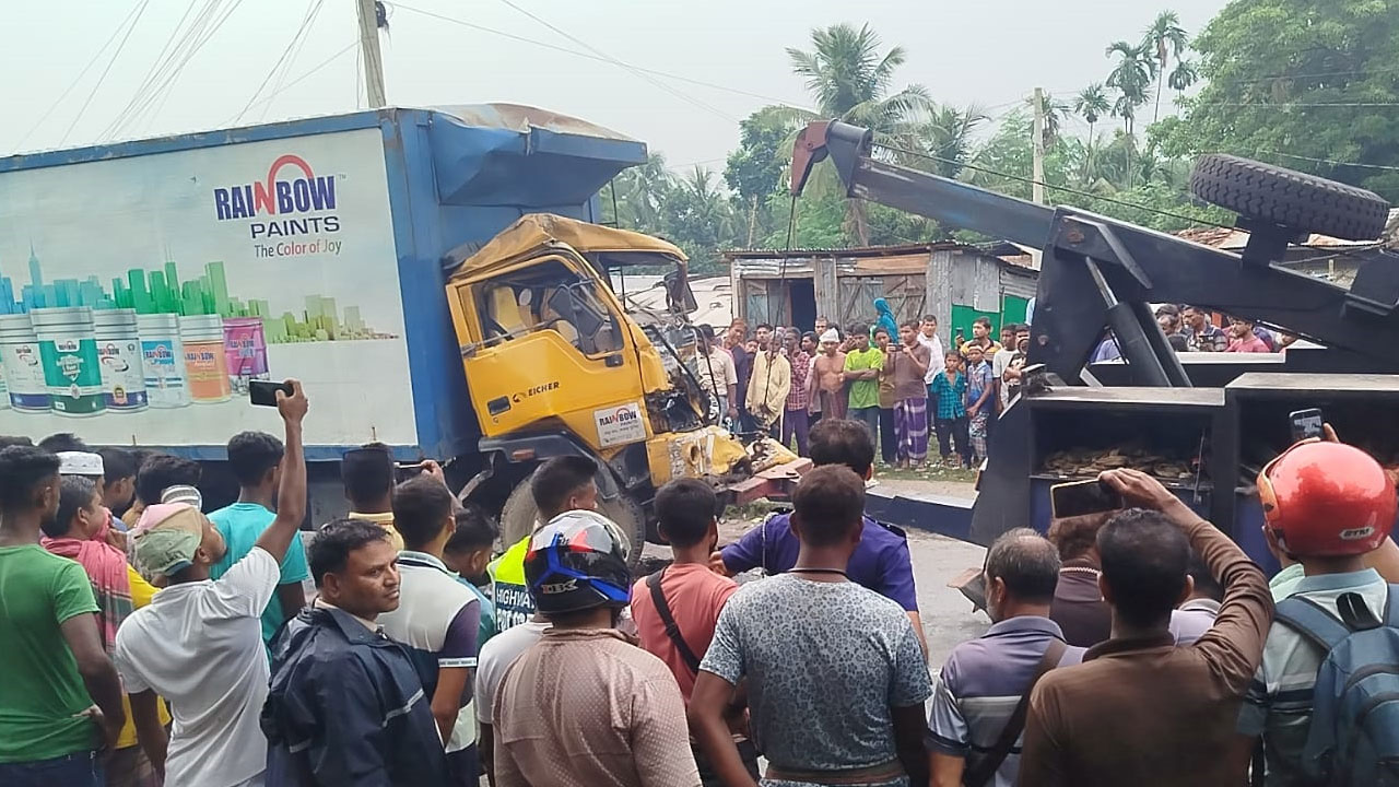 স্থানীয়রা জানান, হঠাৎ প্রচণ্ড শব্দ শুনে তারা ঘটনাস্থলে ছুটে যান। দেখতে পান রোজিনা পরিবহনের একটি যাত্রীবাহী বাস ও রং বহনকারী কাভার্ডভ্যানের মধ্যে সংঘর্ষ হয়েছে। এতে বাসের যাত্রী ও কাভার্ডভ্যান চালকসহ অন্তত ১৫ জন আহত হন।