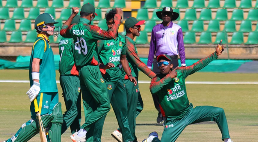 স্পোর্টস ডেস্ক | ত্রিদেশীয় সিরিজের ফাইনালে দক্ষিণ আফ্রিকার বিপক্ষে ৩৩ রানের জয় তুলে নিয়ে শিরোপা নিজেদের করে নিয়েছে বাংলাদেশ অনূর্ধ্ব-১৯ ক্রিকেট দল। ম্যাচে ব্যাট হাতে ৯৫ রান ও বল হাতে পাঁচ উইকেট নিয়ে নায়কোচিত ভূমিকা রাখেন রিজান হোসেন।