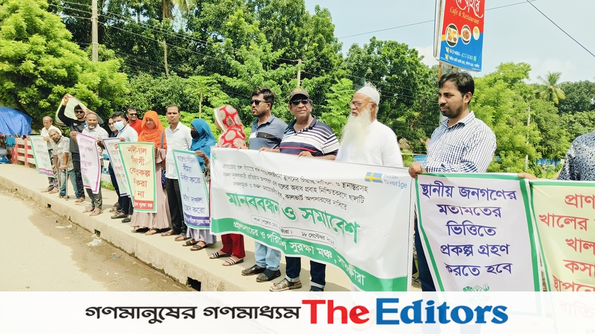 বৃহস্পতিবার (১৮ সেপ্টেম্বর) সাতক্ষীরা শহরের পাকা পুলের উপর এই মানববন্ধন অনুষ্ঠিত হয়।