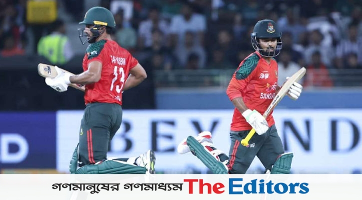 লক্ষ্য তাড়া করতে নেমে শুরুতেই বিপাকে পড়ে বাংলাদেশ। তানজিদ হাসান শূন্য রানে আউট হন। তবে ওপেনার সাইফ হাসান ও অধিনায়ক লিটন দাস মিলে চাপ সামলে নেন। লিটন ২৩ রান করে ফিরলেও সাইফ খেলেন ৪৫ বলে দুর্দান্ত ৬১ রানের ইনিংস। এরপর তাওহীদ হৃদয় দলের জয়ে রাখেন সবচেয়ে বড় ভূমিকা। ৩৭ বলে ৫৮ রান, তার ইনিংস চারটি চার আর দুটি ছক্কায় সাজানো।