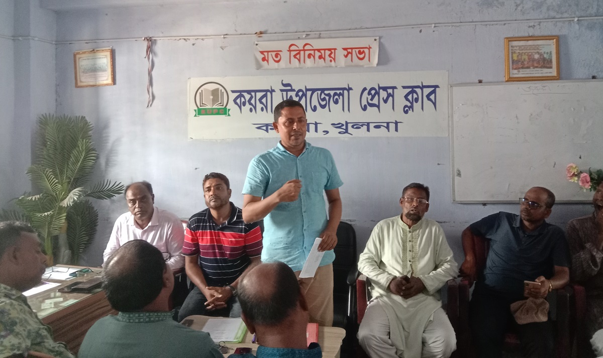 প্রেসক্লাবের সভাপতি শরিফুল আলমের সভাপতিত্বে ও সাধারণ সম্পাদক জিএম রিয়াছাদ আলীর সঞ্চলনায় অনুষ্ঠিত সভায় বক্তৃতা করেন সাংবাদিক আব্দুল খালেক, শেখ মনিরুজ্জামান মনু, শিক্ষক আব্দুর রউফ, জিএম নজরুল ইসলাম, শেখ কওছার আলম, গােলাম রব্বানী, শাহিদুল ইসলাম, শিক্ষক অরবিন্দ কুমার মন্ডল, প্রভাষক শহিদুল্যাহ শাহিন, ফরহাদ হােসেন, শেখ জাহাঙ্গীর কবির টুলু, মাস্টার আবুল বাশার, হাবিবুল্লাহ হাবিব, হাফেজ জাহিদুল ইসলাম, প্রভাষক রবিউল ইসলাম, মিজানুর রহমান লিটন, আজিজুল ইসলাম, মজিবর রহমান, জিয়াউর রহমান ঝন্টু, মাসুদ আহমেদ, শেখ আরিফুর রহমান আরিফ, ফারুক আজম প্রমুখ।