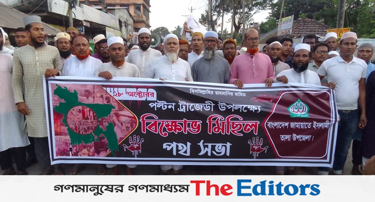 তালা প্রতিনিধি : পল্টন ট্রাজেডি স্মরণে সাতক্ষীরার তালায় বিক্ষোভ মিছিল ও পথসভা করেছে উপজেলা জামায়াত।