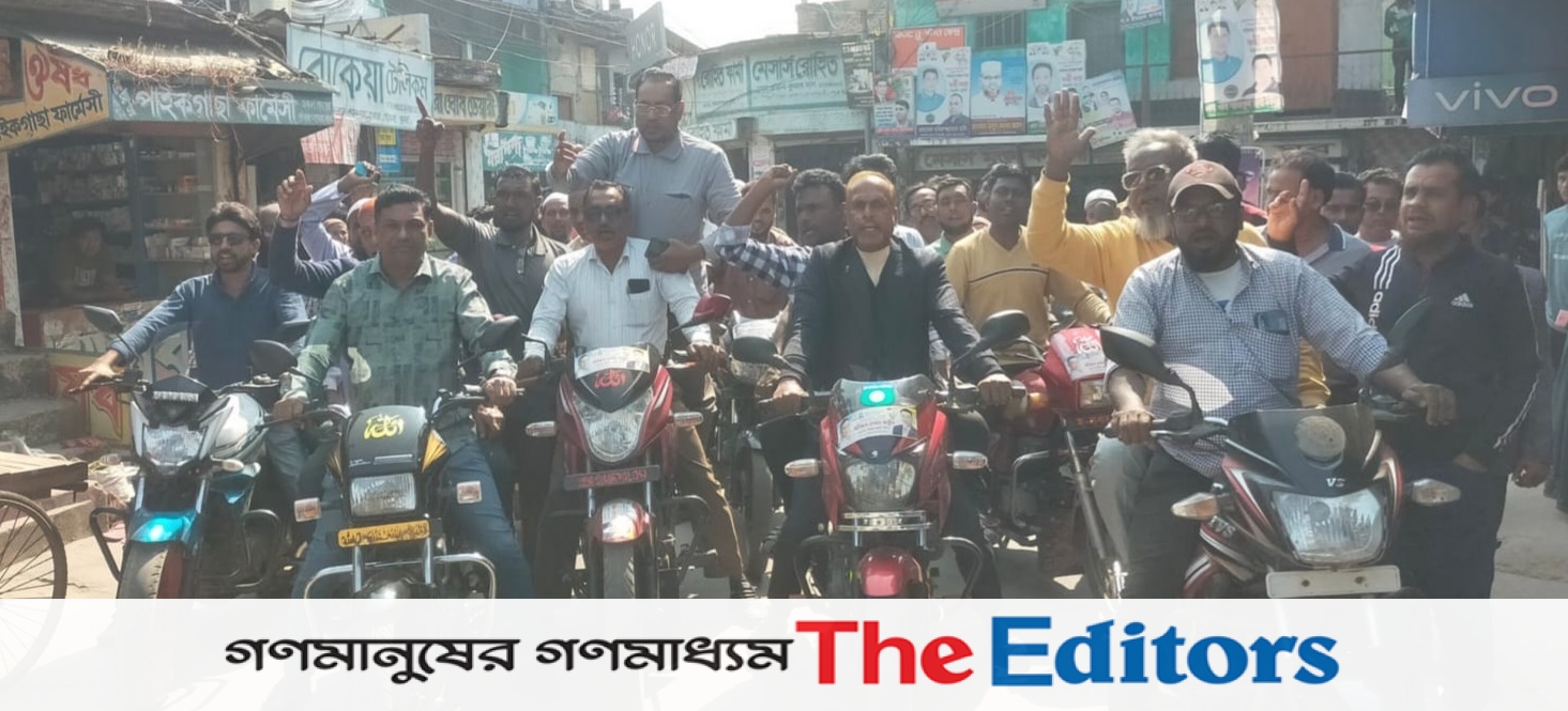 সারাদেশে আওয়ামী লীগের নৈরাজ্যের প্রতিবাদে বৃহস্পতিবার (১৩ নভেম্বর) সকালে উপজেলা সদরের প্রধান সড়কে মোটরসাইকেল শোভাযাত্রা করে দফায় দফায় বিক্ষোভ মিছিল করে তারা।
