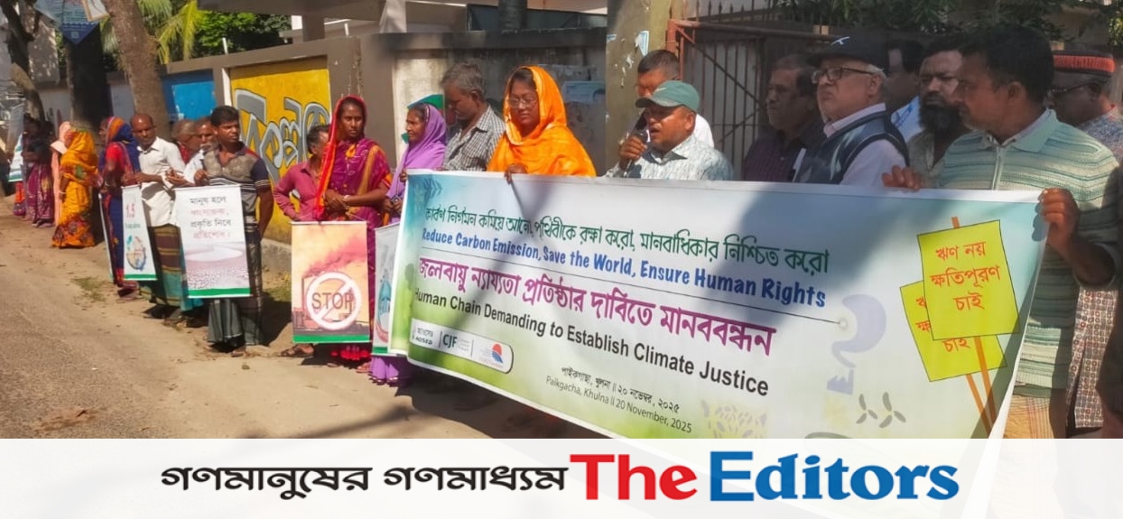 পাইকগাছা (খুলনা) প্রতিনিধি: খুলনার পাইকগাছায় জলবায়ু ন্যায্যতা প্রতিষ্ঠার দাবিতে মানববন্ধন অনুষ্ঠিত হয়েছে।