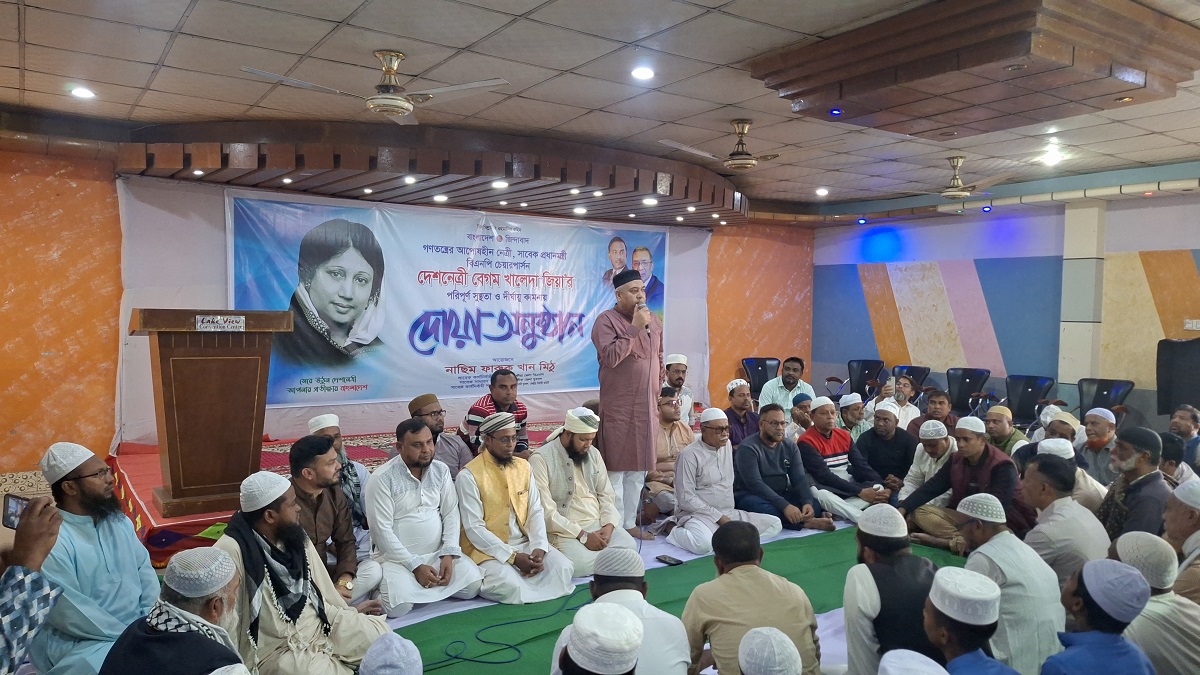 ডেস্ক রিপোর্ট: বিএনপির চেয়ারপার্সন ও সাবেক প্রধানমন্ত্রী বেগম খালেদা জিয়ার সুস্থতা ও দীর্ঘায়ু কামনায় সাতক্ষীরায় কোরআন খতম ও দোয়া মাহফিল অনুষ্ঠিত হয়েছে।
