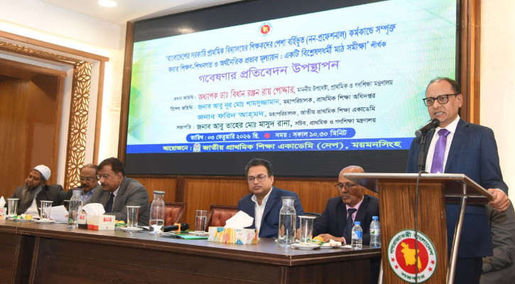 মঙ্গলবার (৩ ফেব্রুয়ারি) জাতীয় প্রাথমিক শিক্ষা একাডেমি (নেপ) আয়োজিত ‘বাংলাদেশ সরকারি প্রাথমিক বিদ্যালয়ের শিক্ষকদের পেশা-বহির্ভূত কর্মকাণ্ডে সম্পৃক্ত করার শিক্ষণ ও শিখনগত ও অর্থনৈতিক প্রভাব মূল্যায়ন’ শীর্ষক গবেষণার প্রতিবেদন উপস্থাপন অনুষ্ঠানে প্রধান অতিথির বক্তব্যে তিনি এ কথা বলেন। অনুষ্ঠানটি প্রাথমিক শিক্ষা অধিদপ্তরের হলরুমে অনুষ্ঠিত হয়।