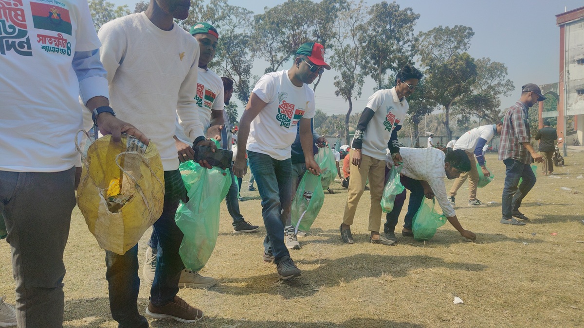 পরিষ্কার-পরিচ্ছন্নতাকালে ধানের শীষের ড. মোঃ মনিরুজ্জামান বলেন, রাজনৈতিক কর্মসূচি যেই দলেরই হোক, শিক্ষা প্রতিষ্ঠানের মাঠ পরিষ্কার রাখা সবার দায়িত্ব। আগামীকাল সোমবার একই মাঠে বিএনপির নির্বাচনী জনসভা অনুষ্ঠিত হবে উল্লেখ করে তিনি বলেন, ‘আমরা চাই একটি সুন্দর ও পরিচ্ছন্ন পরিবেশে আমাদের কর্মসূচি হোক। রাজনৈতিক প্রতিদ্বন্দ্বিতা থাকবে, কিন্তু জনস্বার্থ ও শৃঙ্খলার প্রশ্নে সবাইকে দায়িত্বশীল হতে হবে।’