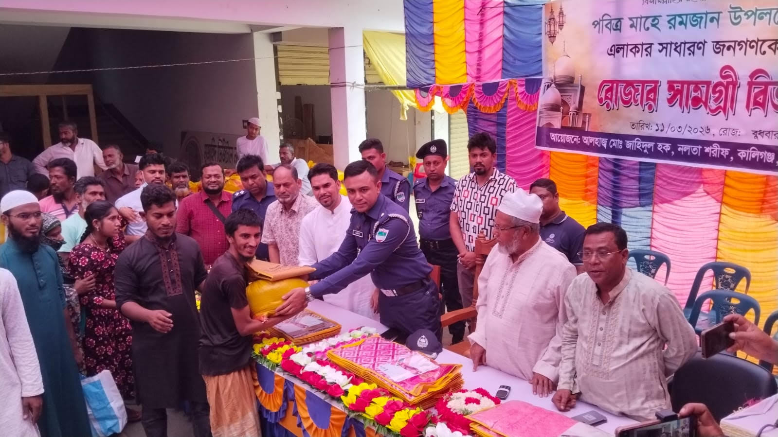 বুধবার (১১ মার্চ) বেলা ১২টায় নলতা শরীফ মার্কেটে এসব বিতরণ করা হয়।