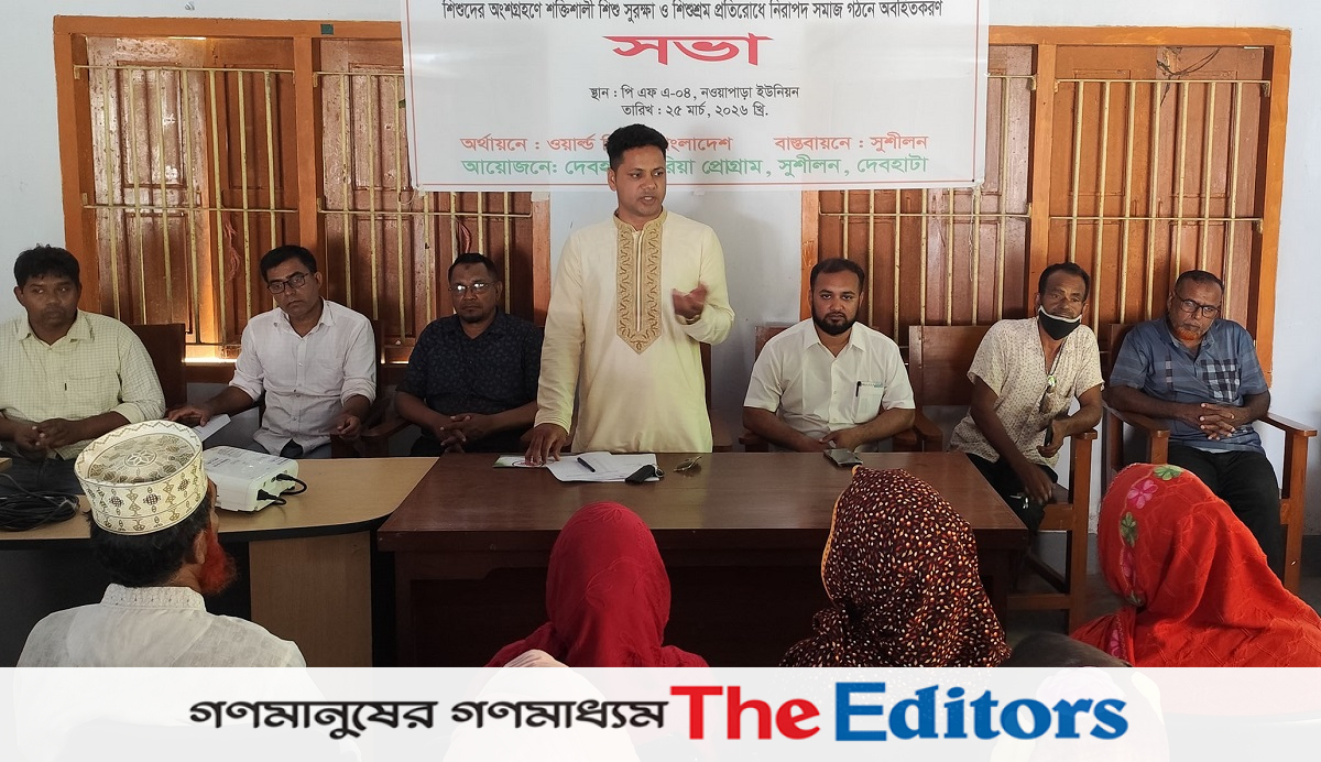 বুধবার (২৫ মার্চ) উপজেলার নওয়াপাড়া ইউনিয়ন পরিষদের সভাকক্ষে ওয়ার্ল্ড ভিশন বাংলাদেশের অর্থায়নে দেবহাটা এরিয়া প্রোগ্রামের আয়োজনে এবং সুশীলনের বাস্তবায়নে এই সভা অনুষ্ঠিত হয়।