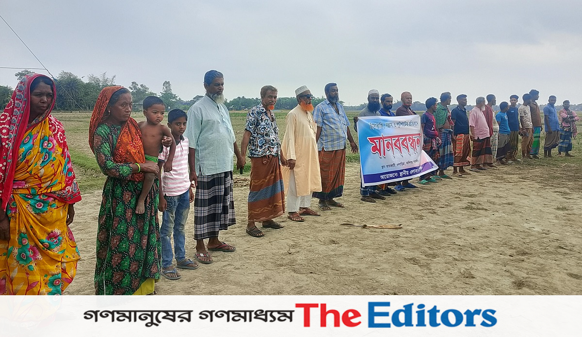 মানববন্ধনে উপস্থিত ছিলেন স্থানীয় মহাব্বত গাজী, জাহাঙ্গীর গাজী, হান্নান গাজী, তরিকুল গাজী, গোপাল মন্ডল, গোবিন্দ মন্ডল, মুজাহিদুল ইসলাম প্রমুখ।