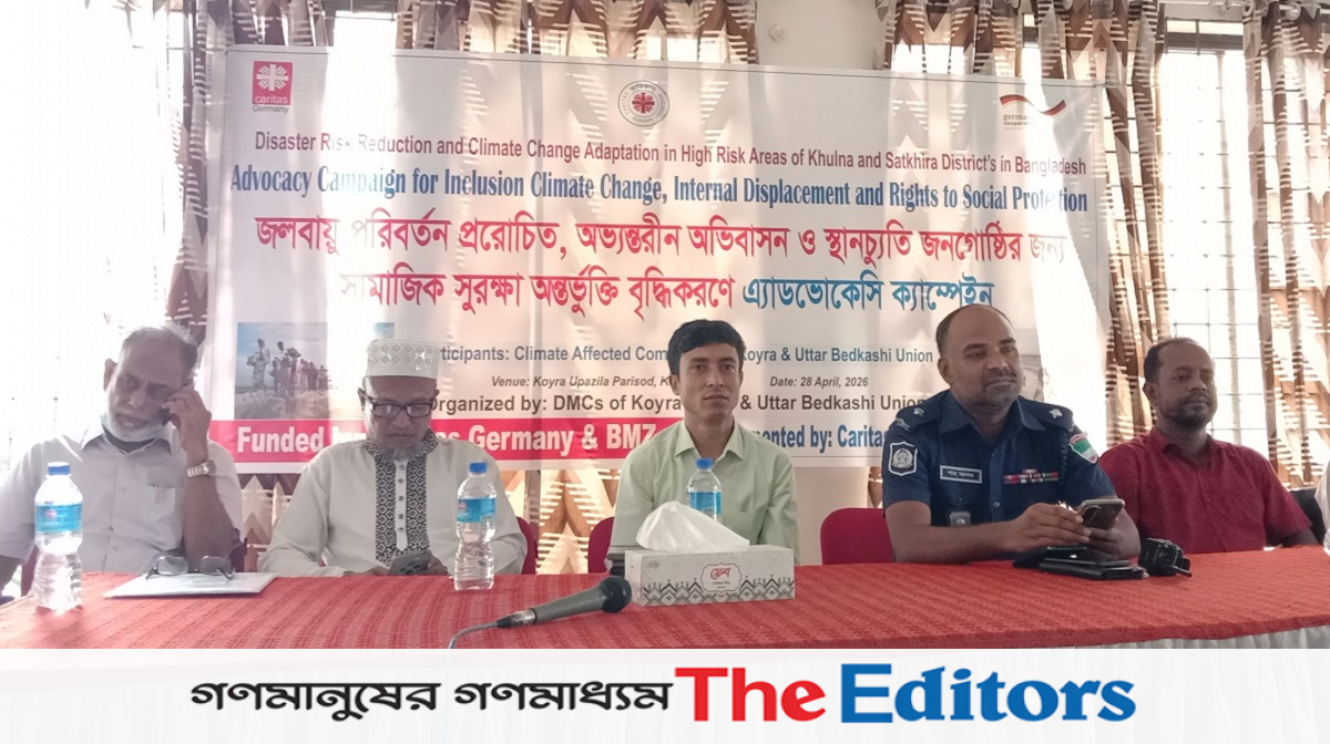 মঙ্গলবার (২৮ এপ্রিল) বেলা ১১টায় কয়রা উপজেলা পরিষদ চত্বরে অনুষ্ঠিত ক্যাম্পেইনে বক্তারা বলেন, জলবায়ু পরিবর্তনের ফলে কয়রার মানুষ প্রতিনিয়ত নদীভাঙন, লবণাক্ততা বৃদ্ধি, ঘূর্ণিঝড় ও জলোচ্ছ্বাসের মতো দুর্যোগের মুখোমুখি হচ্ছে। এসব কারণে অনেক পরিবার তাদের বসতভিটা হারিয়ে অন্যত্র আশ্রয় নিতে বাধ্য হচ্ছে, যা এক ধরনের জলবায়ুজনিত স্থানচ্যুতি। এসব ক্ষতিগ্রস্ত পরিবারগুলোর জন্য আলাদা তালিকা প্রণয়ন, সামাজিক নিরাপত্তা কর্মসূচিতে অগ্রাধিকার প্রদান ও টেকসই পুনর্বাসন করতে হবে।