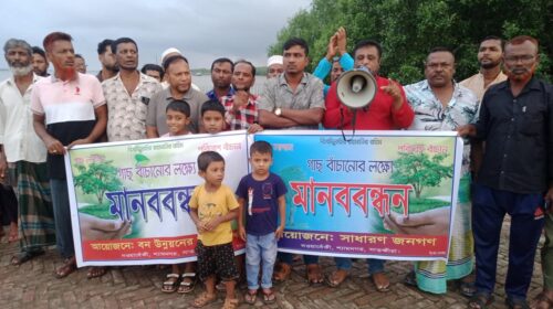 সুলতান শাহাজান, শ্যামনগর: সাতক্ষীরার শ্যামনগরের খোলপেটুয়া নদীর চর বনায়নের গাছ কেটে চর দখলের চেষ্টার প্রতিবাদে মানববন্ধন করেছে এলাকাবাসী। শুক্রবার (৮ আগস্ট) বিকালে নওয়াবেঁকী ফেরিঘাট সংলগ্ন খোলপেটুয়া নদীর পাড়ে দখল হওয়া…