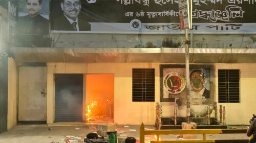 ডেস্ক রিপোর্ট: রাজধানীর কাকরাইলে জাতীয় পার্টির (জাপা) কার্যালয়ে হামলা, ভাঙচুর ও অগ্নিসংযোগ করা হয়েছে। শনিবার (৩০ আগস্ট) সন্ধ্যা সোয়া ৬টার পর এ ঘটনা ঘটায় কিছু লোক। ঘটনাস্থলে দেখা যায়, সন্ধ্যায়…