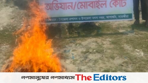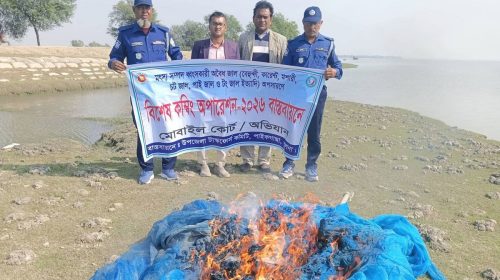 ডেস্ক রিপোর্ট: আশাশুনির নদ-নদী থেকে জব্দকৃত ৩টি অবৈধ বেহুন্দি জাল আগুনে পুড়িয়ে ধ্বংস করা হয়েছে। বৃহস্পতিবার (৮ মে) বেলা ১১টায় উপজেলা প্রশাসন ও মৎস্য অধিদপ্তরের উদ্যোগে খোলপেটুয়া নদীতে অভিযান চালিয়ে…
