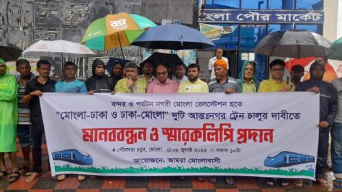 আলী আজীম, মোংলা (বাগেরহাট): বন্দর ও পর্যটন নগরী মোংলা রেল স্টেশন হতে মোংলা-ঢাকা আন্তঃনগর ট্রেন চালুর দাবিতে মানববন্ধন ও রেলপথ মন্ত্রণালয়ের উপদেষ্টা বরাবর স্মারকলিপি প্রদান করা হয়েছে। মঙ্গলবার (৮ জুলাই)…
