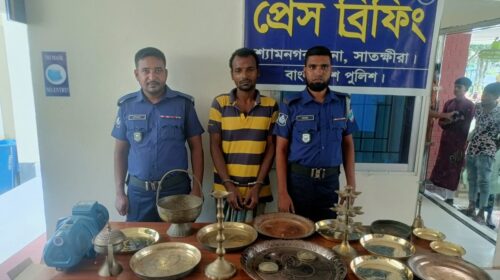 শ্যামনগর প্রতিনিধি: সাতক্ষীরার শ্যামনগরে পৃথক দুটি মন্দির ও শ্মশানে চুরির ঘটনায় পুলিশ সাইফুল ইসলাম (৩০) নামে একজনকে গ্রেপ্তার করেছে। উদ্ধার করা হয়েছে চুরি যাওয়া বিভিন্ন মূল্যবান মালামাল। মঙ্গলবার (৯ সেপ্টেম্বর)…
