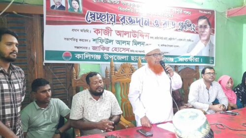 কালিগঞ্জ প্রতিনিধি: জুলাই-আগস্ট গণঅভ্যুত্থান, শোক ও বিজয়ের বর্ষপূর্তি পালনের উদ্দেশ্যে সাতক্ষীরার কালিগঞ্জ উপজেলা ছাত্রদলের আয়োজনে স্বেচ্ছায় রক্তদান ও ব্লাড গ্রুপিং কর্মসূচি পালিত হয়েছে। শুক্রবার (৪ জুলাই) সকাল ১০টায় কালিগঞ্জ প্রেসক্লাবের…